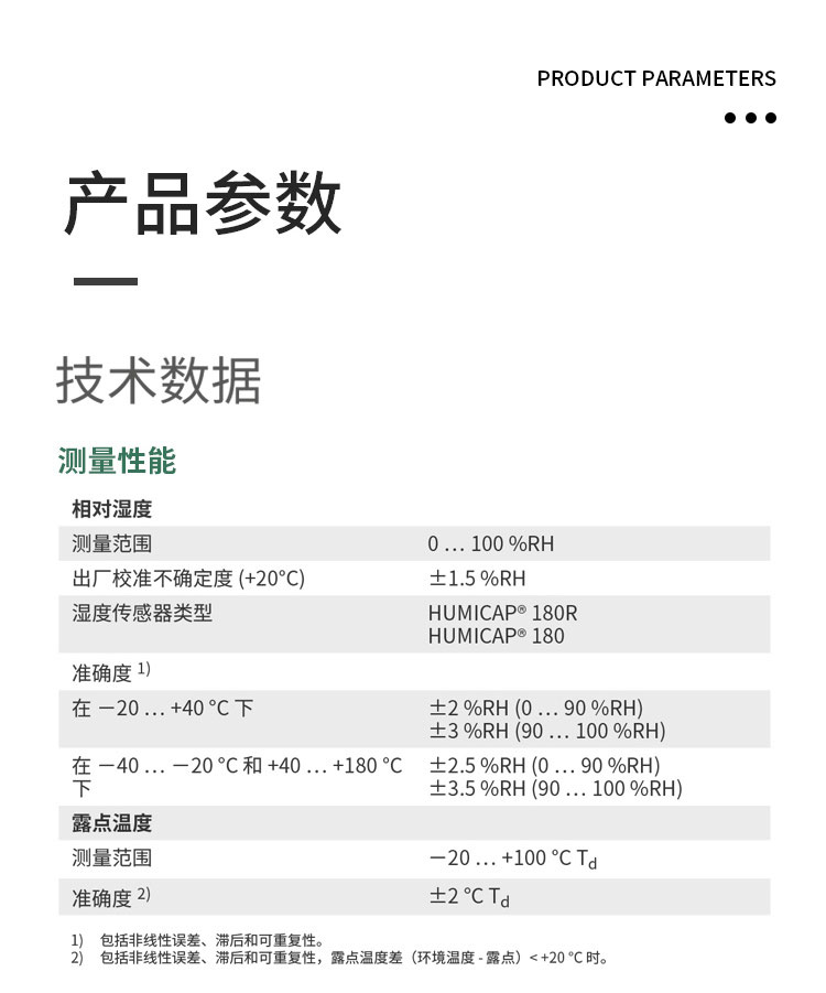 • 在 -70 °C ... +180 °C 工作温度范围内进行全量程温度补偿