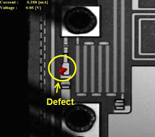 在制备微波通信元件的解封时,样品可能会遭受酸腐蚀。宜特独有的酸溶液配方与精密失效分析工具,使其能够:(1) 使用OBIRCH识别更大范围的热点(图2-1)
